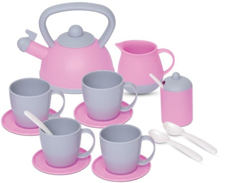 O jogo inclui xícaras delicadas para servir o chá, pires elegantes para acomodá-las, colherzinhas para mexer a bebida, uma graciosa leiteira para um toque especial e uma charmosa chaleira que permite a diversão com líquidos de verdade sem vazar!