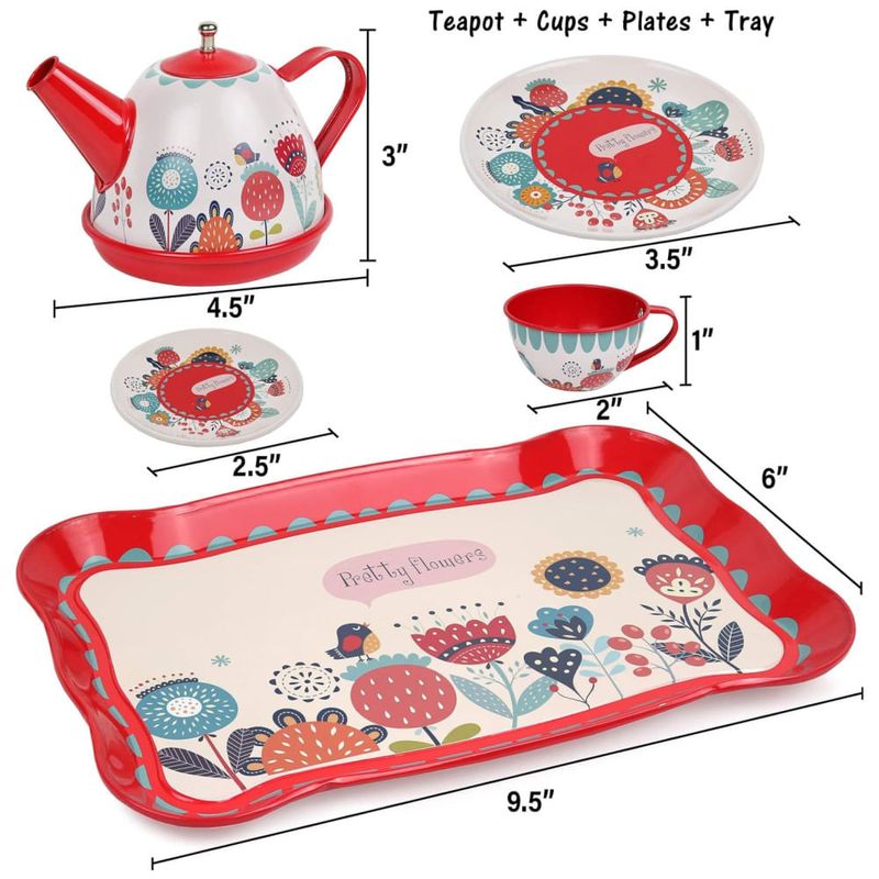 Design de flores – Este conjunto de chá para crianças é decorado com um lindo design floral. Certamente irá encantar e inspirar sua pequena anfitriã