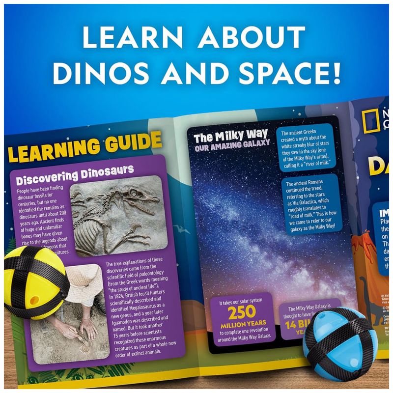 Divirta-se com segurança com o Jogo de Dardos Glow in The Dark da National Geographic Kids! Com bolas adesivas que brilham no escuro e um grande alvo reversível, as crianças podem experimentar a emoção dos dardos de forma segura. O alvo pode ser pendurado em qualquer lugar e possui temas de espaço e dinossauros que as crianças vão adorar. O alvo extragrande é reversível com incríveis designs que brilham no escuro. Basta virar o alvo e alternar entre um tema de dinossauros pré-históricos e um design de sistema solar! Este jogo de dardos é perfeito para crianças de todas as idades, graças ao seu alvo extragrande de 71cm! Além disso, é dobrável e inclui uma bolsa de armazenamento para que as crianças possam guardá-lo facilmente ou levá-lo para a casa de um amigo ou parente. Construído para durar, o alvo e os dardos são feitos com componentes de alta qualidade e costura resistente para resistir ao uso repetido. Os dardos grudam toda vez, eliminando a frustração, e o alvo é fácil de montar com a ventosa inclusa. Estes brinquedos educativos de alta qualidade proporcionam uma experiência prática de aprendizado e todos os nossos produtos são apoiados por um serviço excepcional.