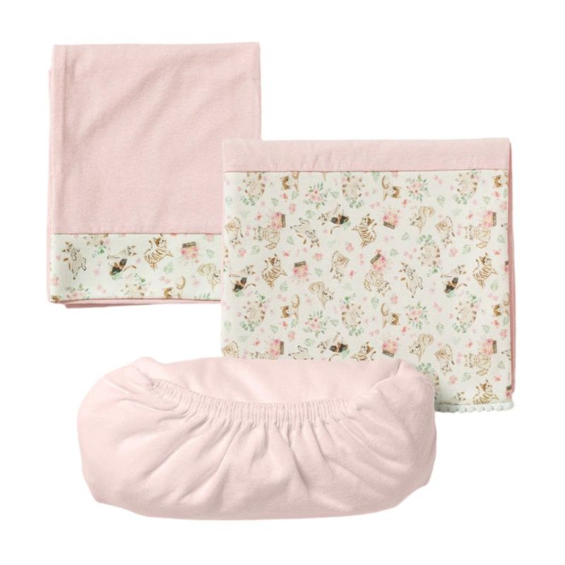O jogo de lençol 03 peças Hug traz conforto e cuidado para o quartinho do bebê. O kit possui um lençol de elástico, uma fronha e um sobre lençol com vira em suedine estampado. Além disso, o sobre lençol é ótimo para cobrir o bebê. Indicado para berço padrão americano.
