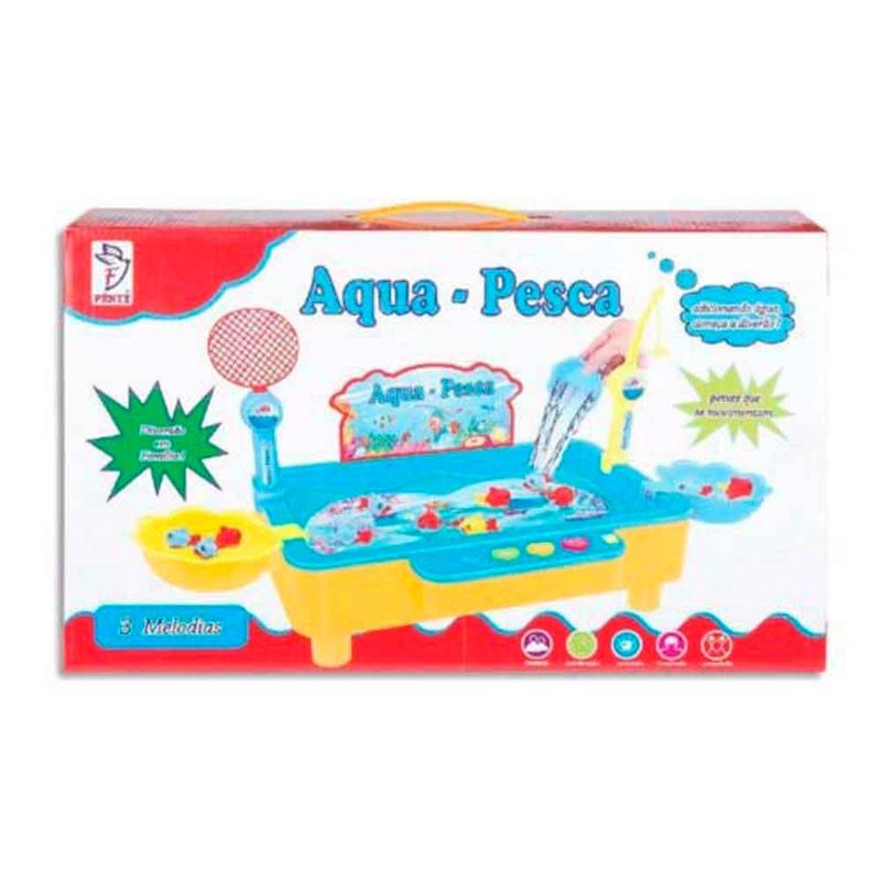 Conteúdo da embalagem: 1 Acqua Pesca, 2 varas de pesca, 2 telas de pesca, 2 suportes para vara ou tela, 10 peixinhos