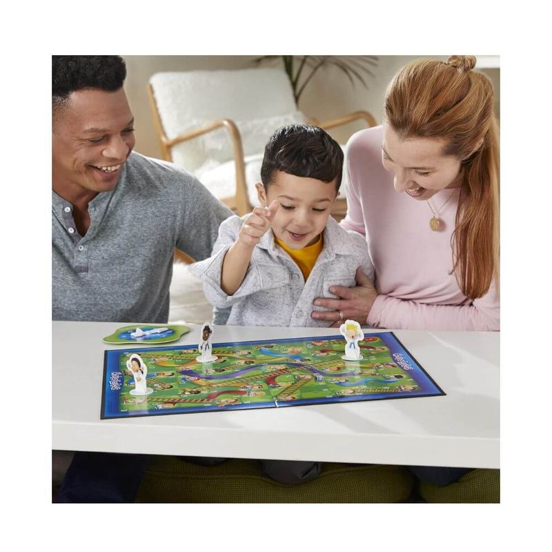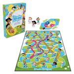 Muita diversão com o jogo de tabuleiro Chutes and Ladders. É um jogo divertido para crianças a partir dos 3 anos. É uma aventura de subir e escorregar onde os jogadores tentam alcançar o espaço 100 primeiro para ser o vencedor. Os jogadores devem subir as escadas tendo cuidado para não escorregar nas rampas. É uma ótima opção para crianças que ainda não aprenderam a ler. Os números no tabuleiro são uma ótima oportunidade para praticar os numerais. É um jogo rápido para brincar em família ou com amigos. É um excelente presente de aniversário ou outras celebrações para crianças a partir dos 3 anos.
