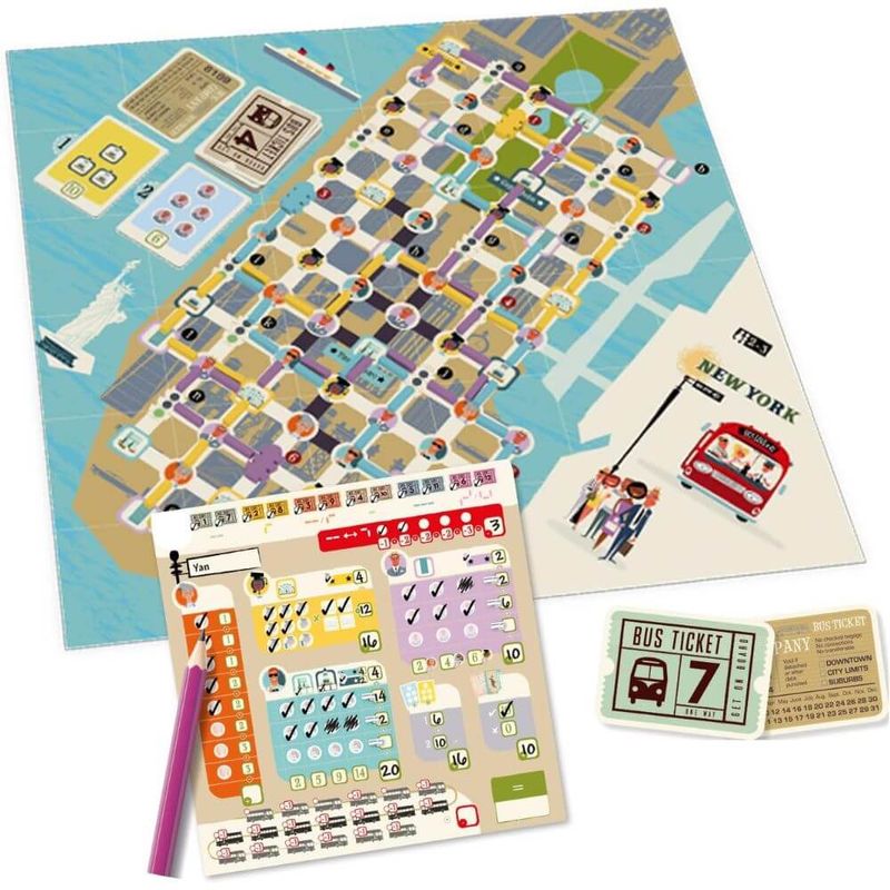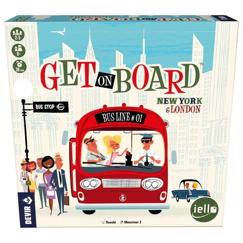 Em Get on Board, você tem doze rodadas para construir a melhor linha de ônibus da cidade. Cada rodada revela uma nova carta que mostra a todos os jogadores a forma da rota que eles devem completar. Coloque seu ônibus de acordo no painel central. Leve os passageiros onde eles querem ir conectando-os e seus destinos à sua linha de ônibus, evite o trânsito e ganhe o máximo de pontos de vitória possível!
