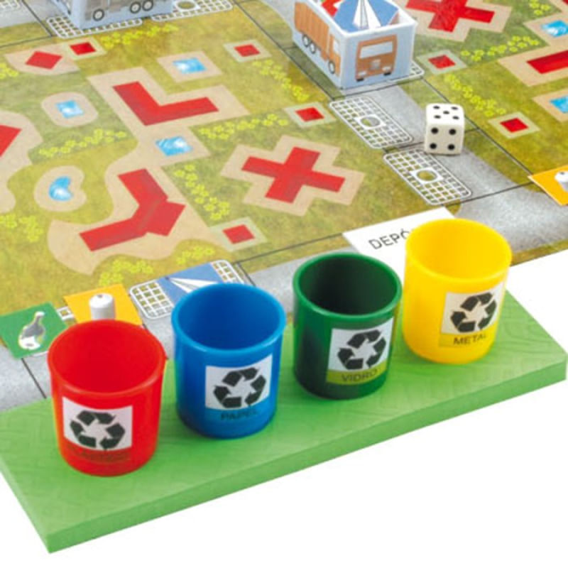 Aprenda a separar os materiais com este jogo didático da NIG, a criança será responsável por coletar o lixo para reciclagem, desenvolvendo conceitos de preservação do meio ambiente e consciência ecológica. cada jogador recebe um caminhão de plástico, que percorre a cidade (tabuleiro) recolhendo o lixo. Será então feita a seleção do material (vidro/papel/metal/plástico) que será depositado nos quatro cestos coloridos de reciclagem.