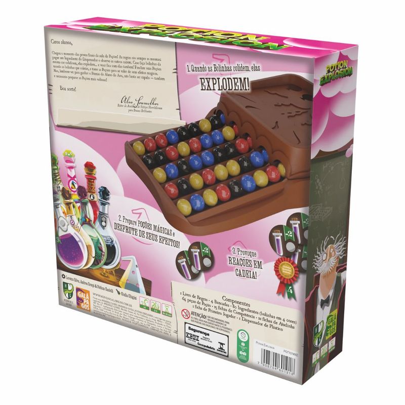 Chegou o momento das provas finais da aula de Poções! As regras são sempre as mesmas: pegue um Ingrediente do Dispensador e observe os outros caírem. Caso faça bolinhas da mesma cor colidirem, elas explodem... e você fica com elas também! Finalize suas Poções usando as bolinhas que coletar, e tome as Poções para se valer de seus efeitos mágicos.