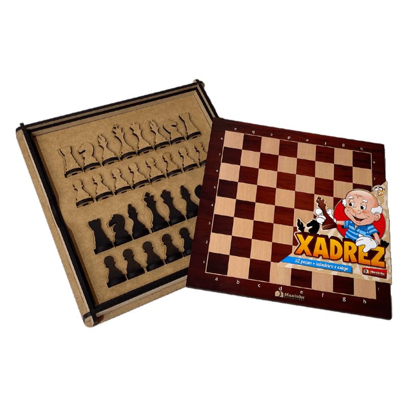 O Jogo de Xadrez é composto por 1 Caixa 35 x 35 x 5 cm + 32 peçasFabricante: Artesanato ManinhoMaterial: MDFEmbalagem: PVC Encolhível Dimensões do produto embalado: 35 x 35 x 5 cmPeso aprox.: 1,850 kg A partir de 7 anos