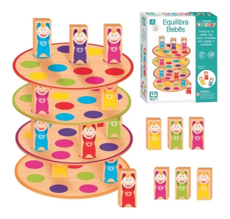 Aprender vai ser muito mais divertido com o equilibra bebês da coleção Crescer. Com esse brinquedo, seu pequeno desenvolve as habilidades motoras e concentração. Posicione os bebês nas cores sorteadas sem perder o equilíbrio.