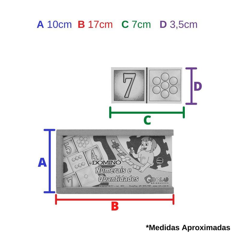 Conteúdo da Embalagem: 1 Jogo De Dominó Infantil Numerais e Quantidades Com 28 Peças Cada.