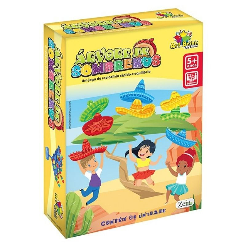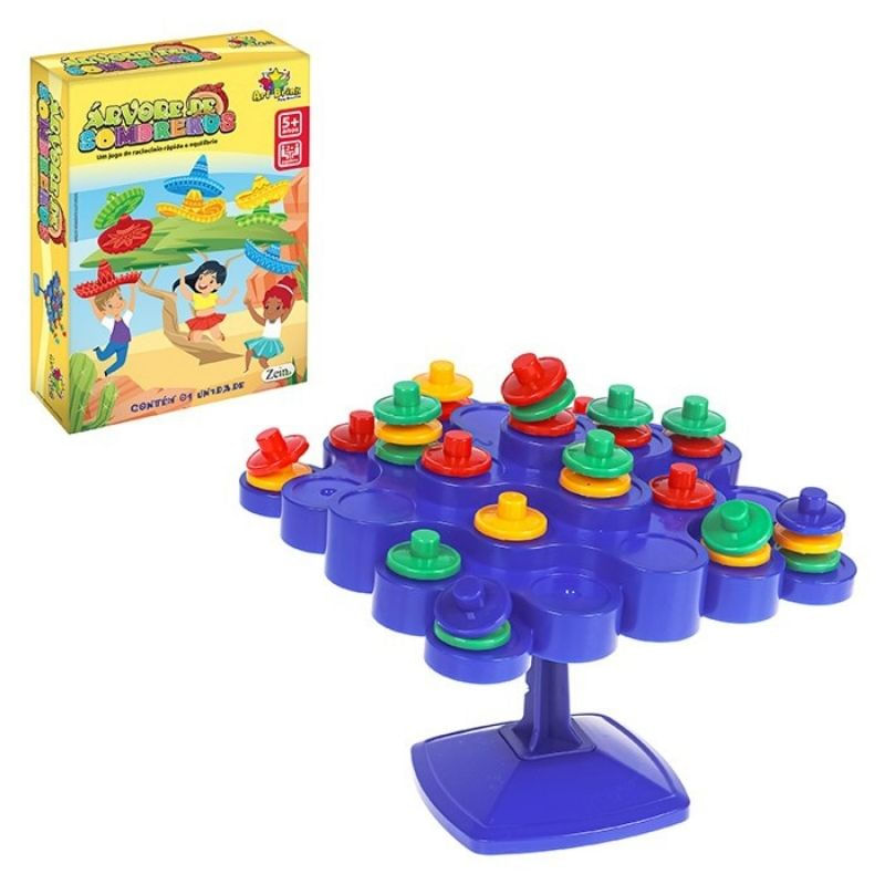 No jogo Equilibrando Discos Arvore de Sombrero os jogadores lançam o dado e devem equilibrar um chapéu na casa correspondente ao número tirado. Se cair no número 6, o jogador tem a vantagem de escolher qualquer outra casa para colocar seu chapéu. O objetivo é ser o primeiro a equilibrar todos os seus chapéus na árvore sem derrubá-la. Porém, se a árvore cair durante sua vez, você terá que ficar com todos os chapéus caídos, aumentando o desafio. Cada chapéu adicionado torna a pilha mais instável, exigindo que os jogadores avaliem cuidadosamente a estabilidade antes de fazerem suas jogadas. Para 2 ou mais jogadores. Medidas: 11cm x 14cm (A x L).