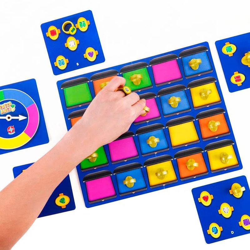 Quem encontrar primeiro os cinco anéis do seu tabuleiro, é o vencedor! Use a memória e seja o primeiro a achar todos os anéis!
