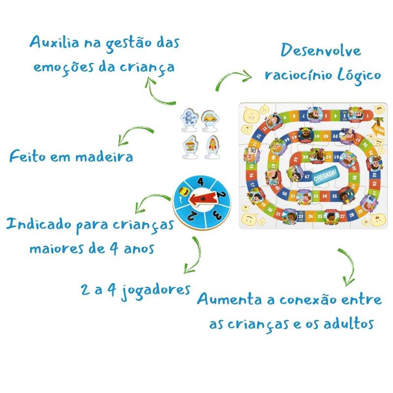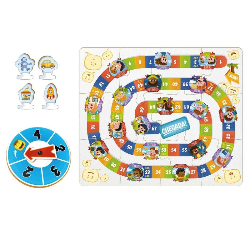 Conteúdo da Embalagem: 1 Tabuleiro , 1 Roleta, 30 Fichas , 1 Manual de instruções, 4 Peões, 4 Bases Plásticas para os peões