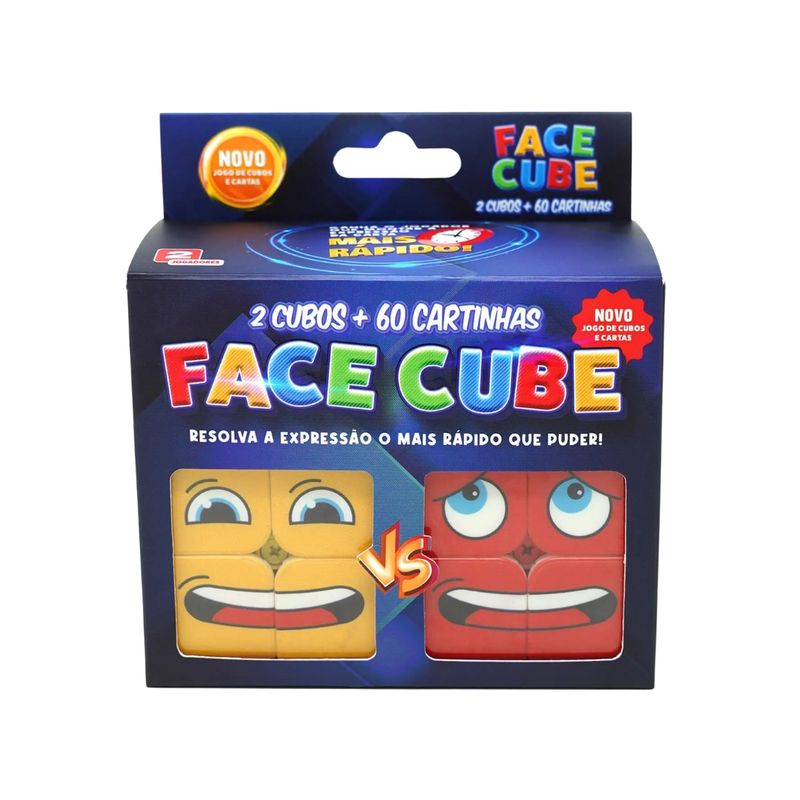 Jogo Face Cube com 2 Cubos e 60 Cartas - Cuber BrasilParte superior do formulário Informações do Produto: O jogo face cube é um game para 2 ou mais jogadores. Esse kit acompanha 2 cubos 2x2x2 personalizados e 60 cartinhas com expressões diferentes. O baralho deve ser posicionado entre os jogadores de ponta cabeça e a primeira carta deve ser virada; feito isso o jogo está valendo. Quem montar seu cubo com a mesma expressão da cartinha ganha a rodada e leva a carta de presente. O jogador que conquistar o maior número de cartas vence. Sugestão de uso: Em casa, no intervalo da escola ou durante viagens Itens inclusos: 2 cubos, 60 cartas. Dimensões aproximadas do produto: 5x5x5cm. Recomendado: Não recomendado para menores de 14 anos de idade. Alimentação: Não necessita. Material composição: Plástico. Certificação: Portaria nº 563 de 29/12/2016 - objetivo item 2 estabelecido no regulamento técnico Mercosul. Garantia do Fabricante: 03 meses contra defeitos de fabricação. Aviso: Todas as informações divulgadas são de responsabilidade exclusiva do fabricante/fornecedor. As cores dos tecidos ou dos produtos podem variar entre as imagens mostradas acima ou fotos da embalagem. Imagens meramente ilustrativas.