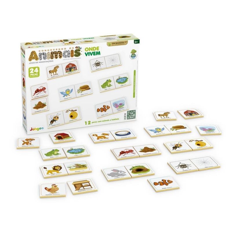 Jogo Conhecendo os Animais Junges – 24 peças em MDF, alta qualidade e aprendizado divertido O jogo Conhecendo os Animais da Junges é uma excelente ferramenta educativa que une diversão e conhecimento. O conjunto inclui 24 peças em madeira de reflorestamento (MDF), formando 12 cenas completas que relacionam cada animal ao seu habitat natural. A impressão direta na madeira garante cores vivas, durabilidade e resistência, tornando o jogo ideal para uso frequente em casa, escolas e espaços educativos. Projetado para estimular o raciocínio lógico, a concentração e a atenção, o jogo transforma o aprendizado em uma atividade leve, envolvente e prazerosa. As crianças exploram diferentes ambientes, identificam os animais e desenvolvem habilidades importantes enquanto brincam. Este produto faz parte da Linha Incluir & Brincar, criada especialmente para incentivar o desenvolvimento infantil e promover a inclusão por meio do brincar. Uma coleção pensada para acolher, ensinar e divertir — perfeita para todas as crianças.