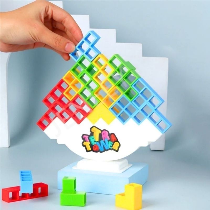 4. O jogador coloca o bloco no topo da torre, formando novos andares.
