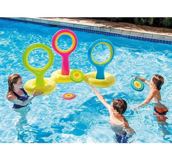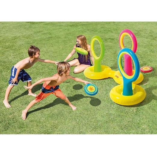 Anime seus dias de verão com este jogo de disco voador inflável INTEX! Pode ser jogado tanto na piscina como no jardim. Mire, lance e passe os discos pelo aro da cesta. A diversão é garantida!