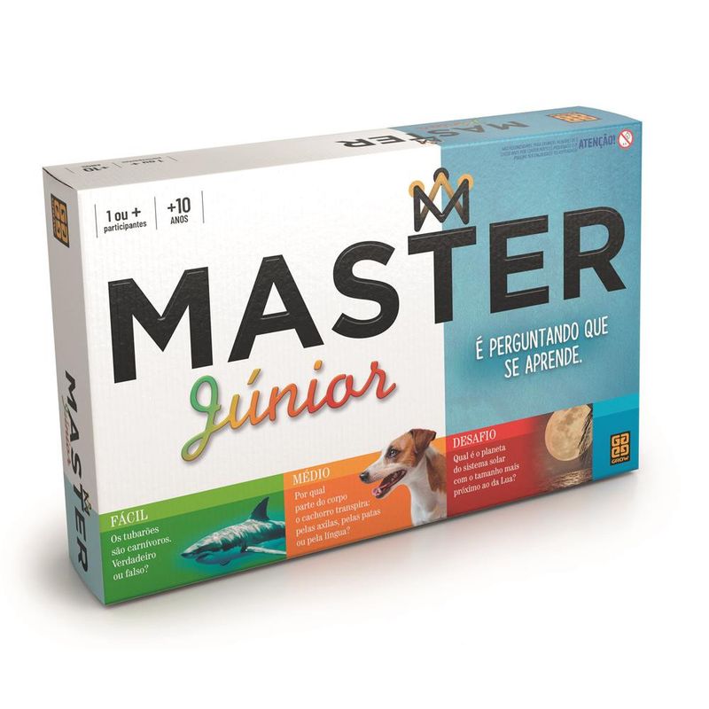 Para quem tem 30 anos ou mais, vai se lembrar do divertido Jogo Master Júnior da Grow. Um jogo de tabuleiro de perguntas e respostas, que ensina brincando. Indicado para crianças a partir de 10 anos, traz perguntas de conhecimento gerais que devem ser respondidas rapidamente, quem errar quem errar a pergunta perde fichas de vida e quando acabarem as fichas, você sairá do jogo.