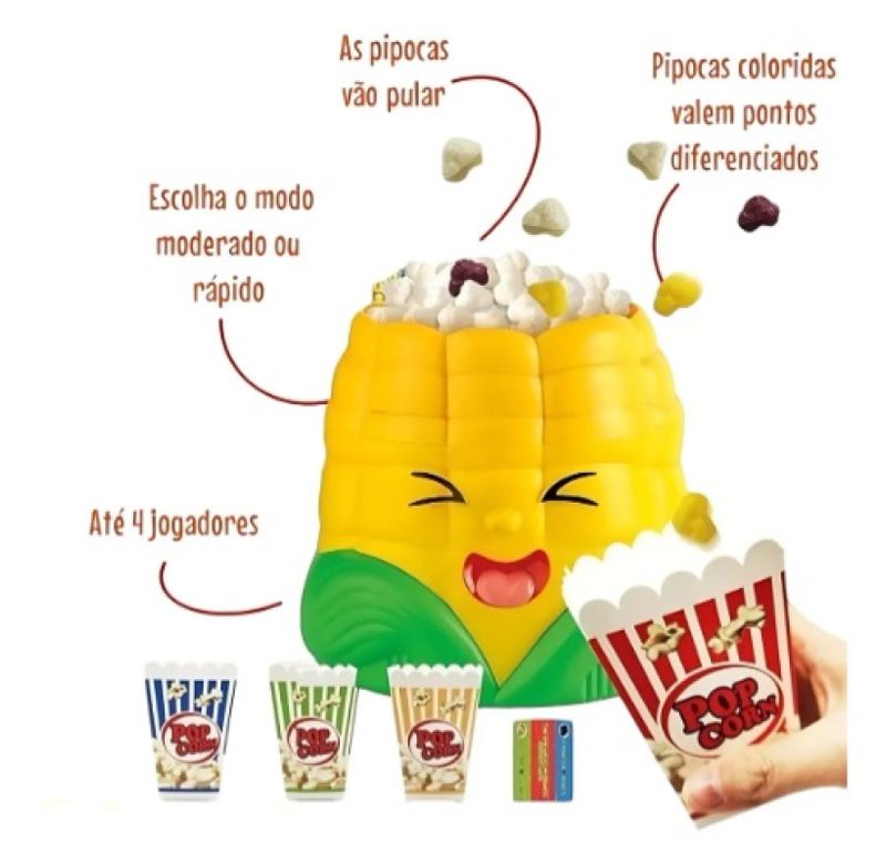 Material / Composição: Plástico resistente e seguro para crianças Benefícios: Estimula reflexos, coordenação motora, agilidade e diversão em grupo Número de Registro: 002 00992/2025 Contém: 01 base do jogo Pop Corn (milho divertido); Pipocas (peças do jogo); 4 Saquinhos de Pipoca para os Jogadores, Instruções para jogar.