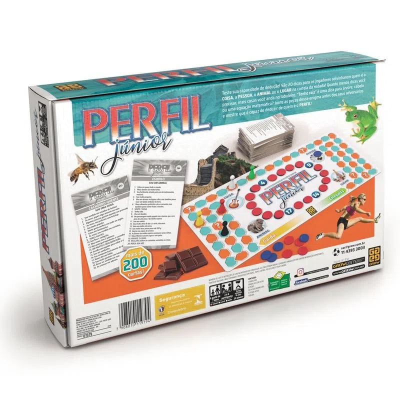 Com conteúdo feito especialmente para crianças a partir de 7 anos, o jogo traz dicas sobre pessoas, anos, coisas ou lugares para você deduzir de quem é o PERFIL em questão. A cada rodada, uma carta com um perfil secreto é sorteada. Um a cada vez, os jogadores vão recebendo dicas sobre o perfil secreto em questão. Quanto menos dicas você utilizar para acertar, mais pontos irá ganhar.