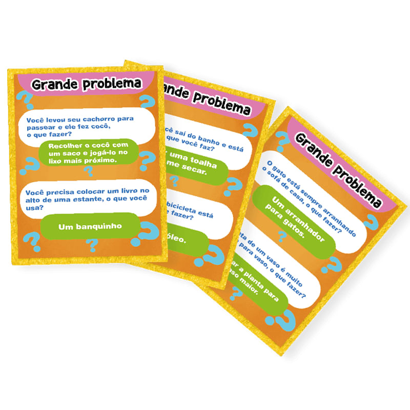 São Cartas Ilustradas com Problemas, Cujo Objetivo do Jogo É Solucioná-Los Através Das Fichas de Soluções, a Dinâmica do Jogo Oferece Mais Desafios com As Cartas de Grandes Problemas, Para Jogar de 2 a 3 Jogadores.