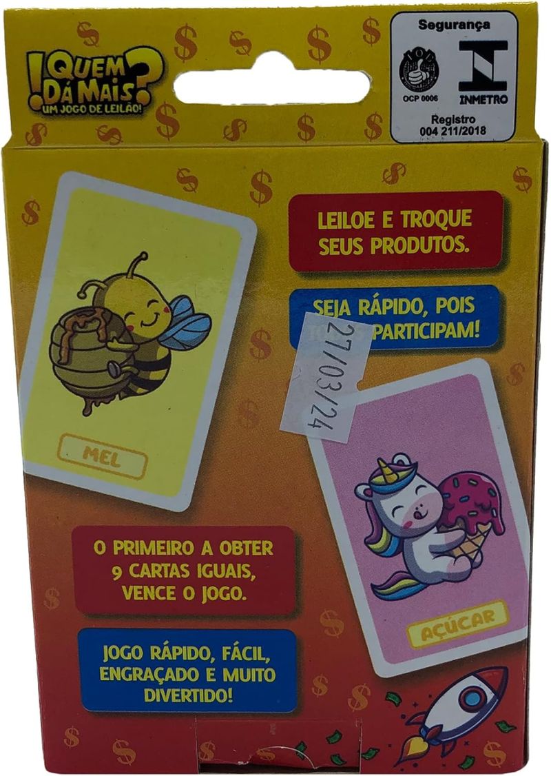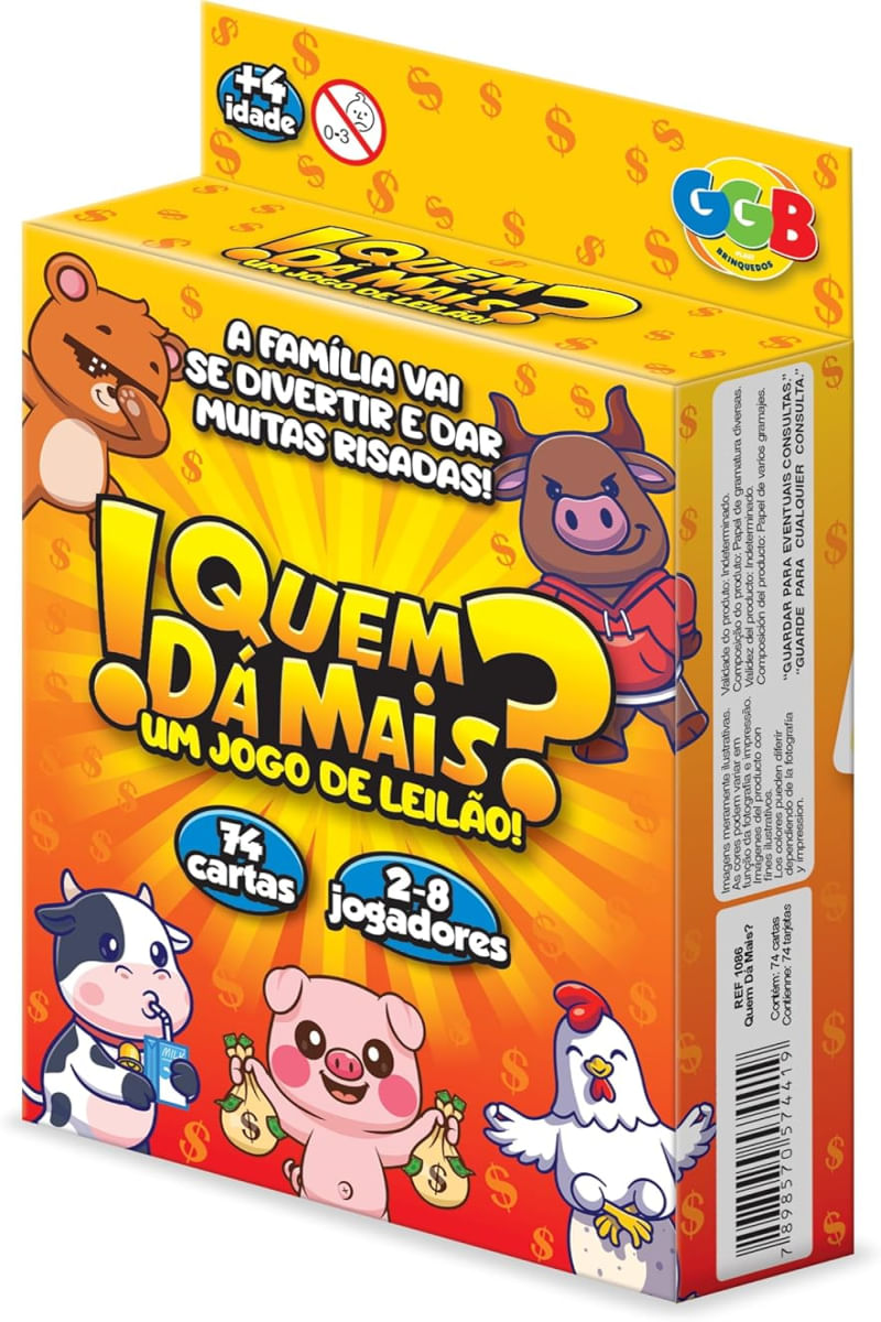 JOGO QUEM DÁ MAIS? UM JOGO DE LEILÃO 74 CARTAS GGB BRINQUEDO RACIOCÍNIO CRIANÇA FAMÍLIA BARALHO MESA