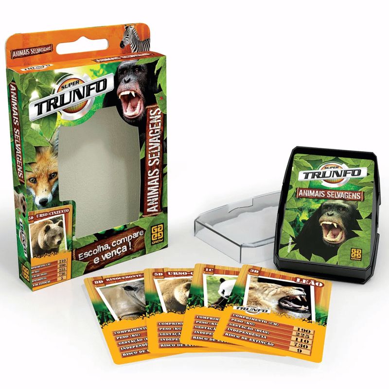 Super Trunfo traz 32 cartas com imagens e informações para uma disputa superdivertida. Você compara sua carta com a do outro jogador. Mas escolha bem a característica que vai utilizar a cada rodada, pois, se sua carta ganhar, você fica com a carta do outro jogador; se perder, ele fica com a sua! Escolha, compare e vença esta e emocionante disputa!