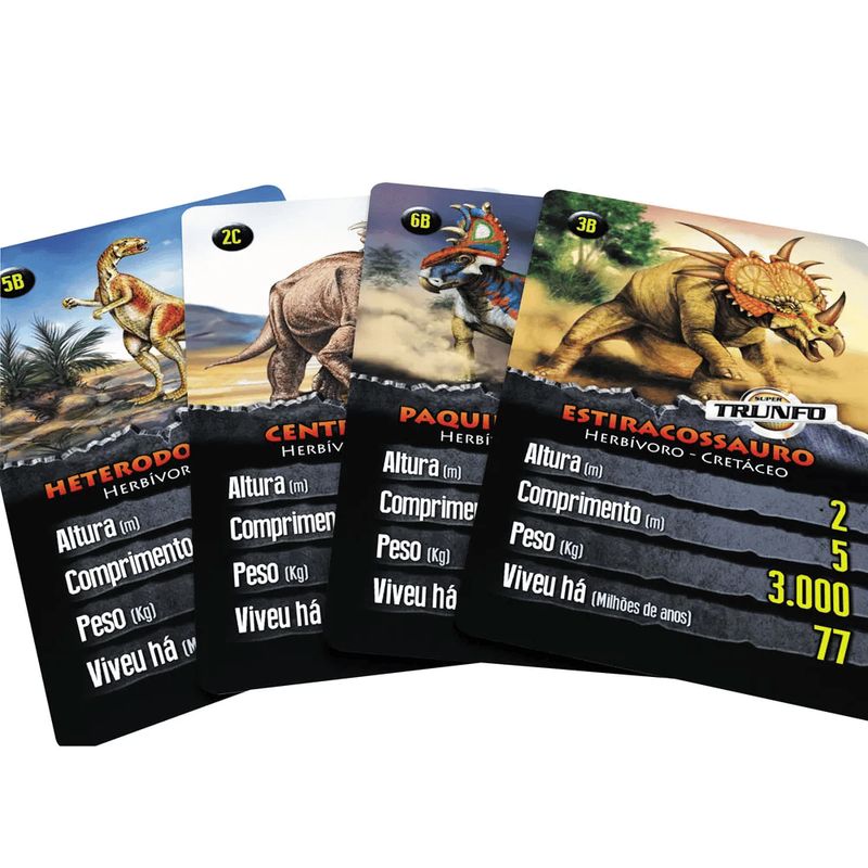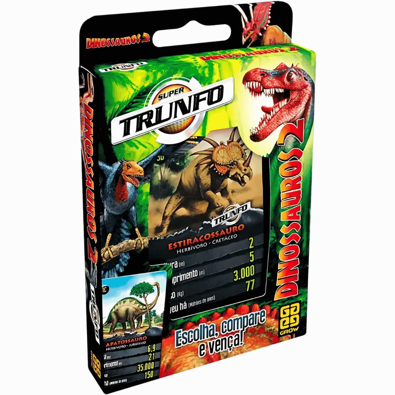 Super Trunfo traz 32 cartas com imagens e informações para uma disputa superdivertida. Você compara sua carta com a do outro jogador. Mas escolha bem a característica que vai utilizar a cada rodada, pois, se sua carta ganhar, você fica com a carta do outro jogador; se perder, ele fica com a sua! Escolha, compare e vença esta e emocionante disputa!