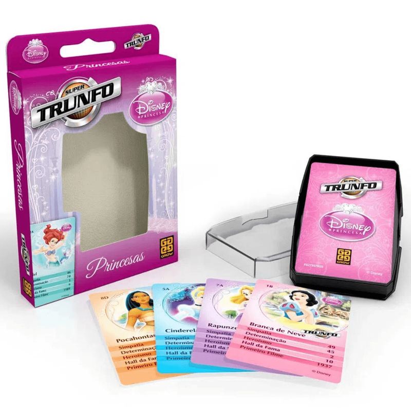 Trunfo Disney princesas traz 32 cartas com imagens e informações de personagens da disney para uma disputa superdivertida!