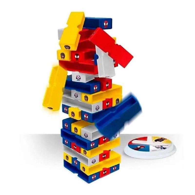 Jogo Terremoto Spidey - Elka O Jogo Terremoto Spidey da Elka é uma emocionante aventura de equilíbrio que desafia sua atenção e habilidades estratégicas. Inspirado nos personagens da série Spidey and his Amazing Friends, o jogo consiste em construir uma torre com blocos coloridos, girar a roleta para selecionar a cor do próximo bloco, retirá-lo com cuidado e colocá-lo no topo da torre. Porém, é preciso ter sangue frio, pois um movimento errado pode desencadear um "terremoto" e acabar com a diversão. Idade recomendada: A partir de 4 anos. Selo Inmetro: 002332/2019 - OCP006.