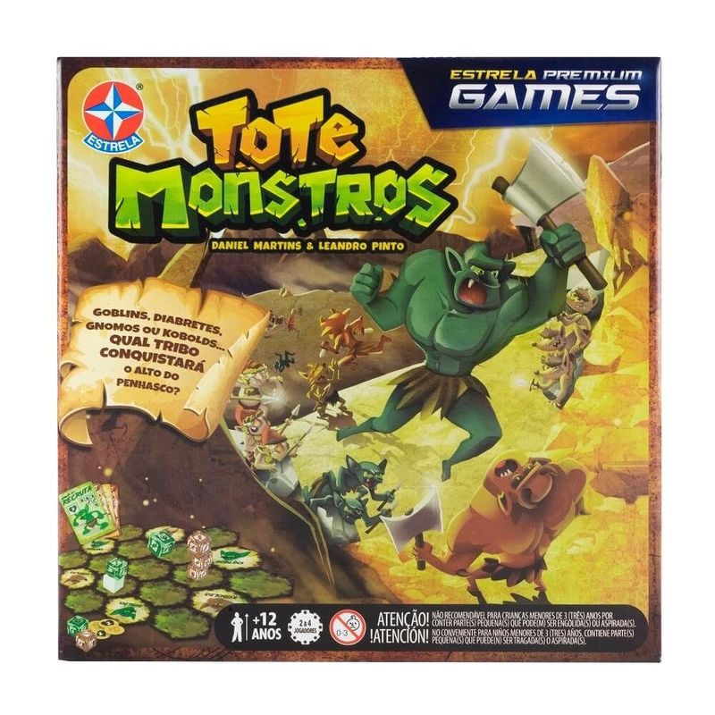 Conheça a linha Estrela Premium, formada por jogos selecionados especialmente para quem curte aventuras estratégicas e elaboradas. No Tote Monstros, cada jogador controla uma tribo de monstrinhos, representados por dados. Essas criaturas lutam pelo controle do topo de um penhasco, e, como são minúsculas, devem expulsar outros membros de tribos inimigas criando “Totens”, escalando uns aos outros e atingindo-os de cima. O último jogador a ter monstrinhos no tabuleiro é o vencedor!