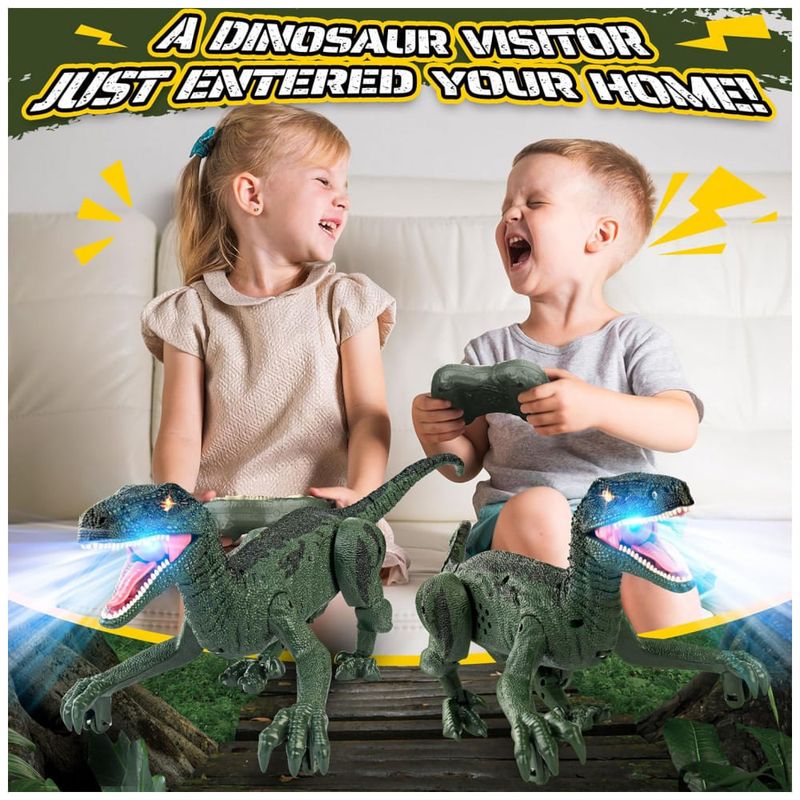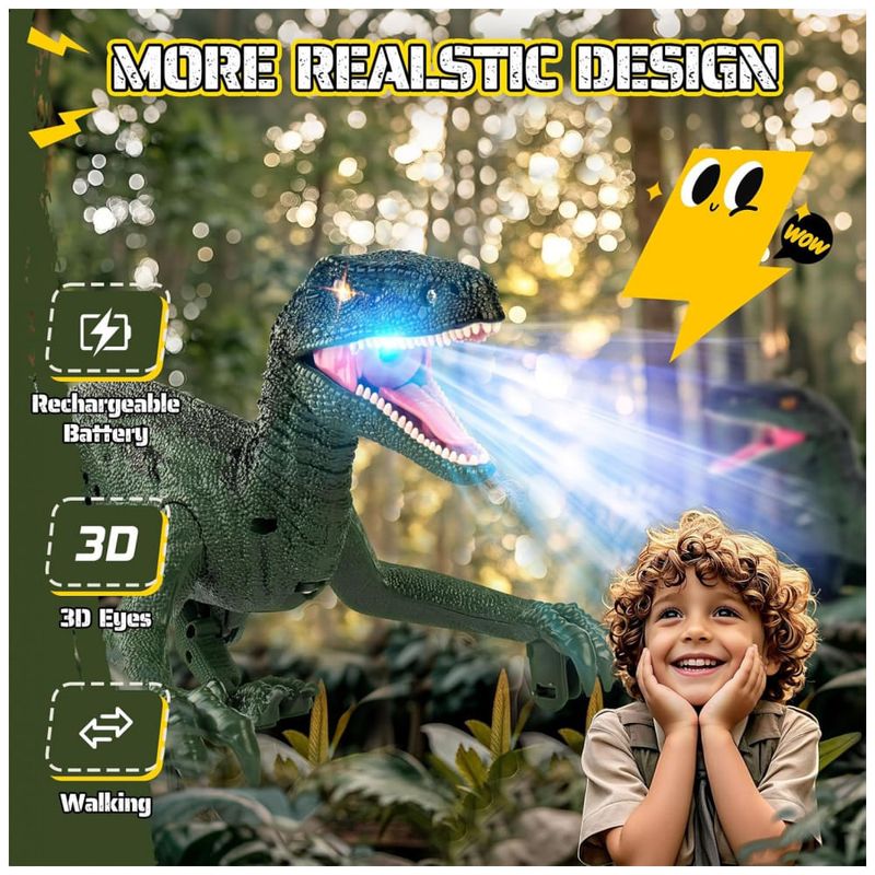 Viva a aventura de Dinossauros com um toque! Este dinossauro de controle remoto possui um modo de demonstração automático. Basta pressionar um botão para vê-lo caminhar e rugir! Com três efeitos sonoros realistas, ele traz o mundo pré-histórico à vida, criando uma experiência de jogo imersiva que desperta a curiosidade e imaginação das crianças. Perfeito para os pequenos amantes de dinossauros que adoram aventuras emocionantes. Com uma aparência realista e movimentos naturais, este dinossauro velociraptor foi projetado com texturas detalhadas, olhos em 3D e uma postura de caminhada natural, trazendo os dinossauros da era jurássica de volta à vida. O movimento suave e os detalhes vívidos mergulham as crianças em um mundo de aventuras pré-históricas. Diversão de Montagem de Dinossauro para Crianças: uma experiência prática e envolvente. As crianças podem montar o dinossauro sozinhas, incluindo a fixação do rabo e das garras dianteiras, promovendo o desenvolvimento da coordenação motora, pensamento lógico e percepção espacial. Um excelente brinquedo de dinossauro para crianças de 5-7 anos que gostam de construir, explorar e aprender brincando. Recarregável e Pronto para Longas Horas de Diversão: Equipado com uma bateria recarregável de alta capacidade, este brinquedo de dinossauro robô está pronto para brincadeiras prolongadas sem trocas frequentes de bateria. Aproveite aventuras mais longas e uso conveniente interno ou externo. O controle remoto usa 2 pilhas AA (não incluídas), permitindo um controle suave e responsivo para momentos emocionantes com dinossauros. Presente Perfeito para Crianças que Amam Dinossauros: Procurando por brinquedos de dinossauro divertidos para crianças de 3-5 anos? Este brinquedo apresenta tecnologia de controle remoto de 2,4GHz, permitindo que vários jogadores controlem o dinossauro ao mesmo tempo, ótimo para interação entre pais e filhos. Um presente maravilhoso que inspira a criatividade e fortalece os laços familiares.