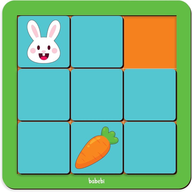 Mova-se Coelhinho São 12 cartinhas de desafios e o seu objetivo é movimentar o coelhinho e sua cenourinha sem tirá-los do tabuleiro até que complete sua missão.