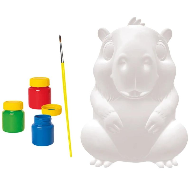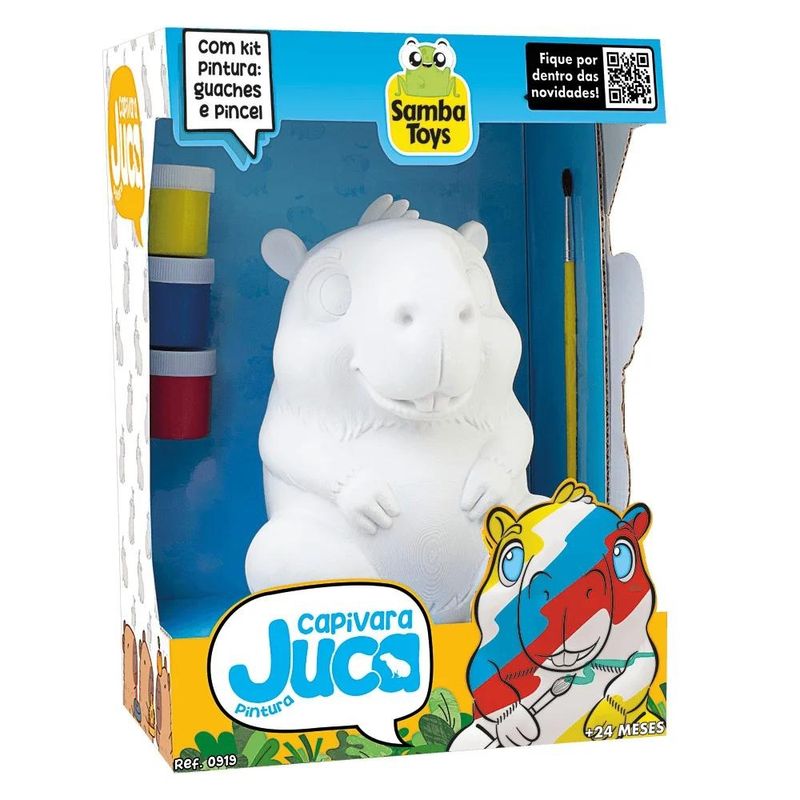 O Juca Capivara de Pintura é um brinquedo criativo e educativo que permite às crianças soltarem a imaginação enquanto personalizam seu próprio pet. Produzido em vinil macio e seguro, o boneco da capivara vem acompanhado de acessórios de pintura, tornando a brincadeira ainda mais divertida e interativa.\n\nIdade recomendada:2-4 anos;Composição/Material:Plástico;Funciona com pilhas:Não;Brinquedo com luz:Não;Brinquedo com som:Não;Dimensões:24,7x18x15 cm;Peso:0,432 kg;Código de Barras:7908759405417;Garantia do Fornecedor:3 Meses contra defeito de fabricação;