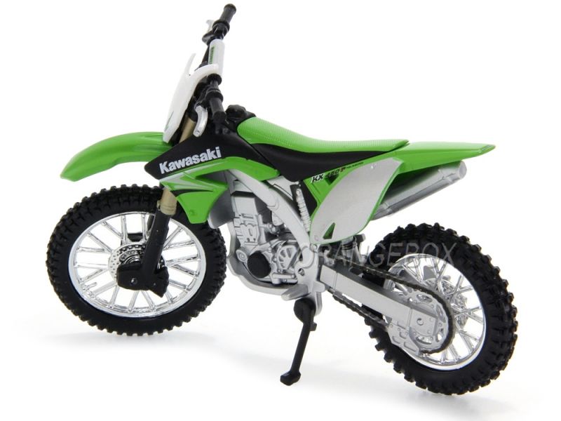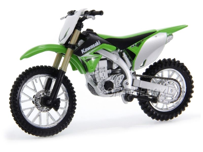 Miniatura Kawasaki KX 450F Bburago 1:18 Miniatura fabricada em plástico com partes em metal Produto novo, na embalagem original Miniatura em escala 1:18, com 11,5cm Marca: Bburago Pneus de borracha Guidon ativo Somente o tanque é em metal
