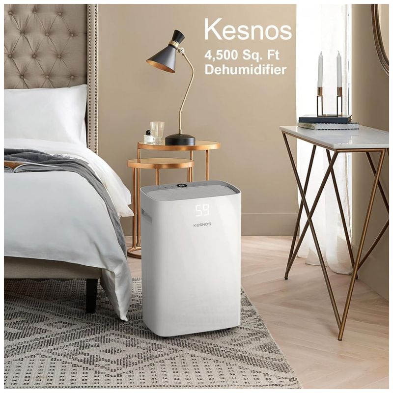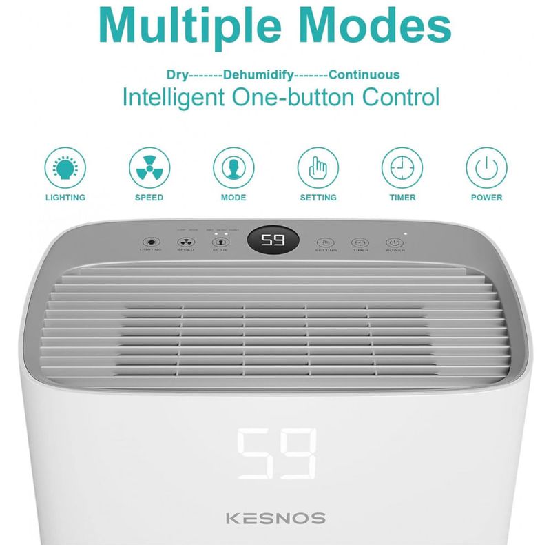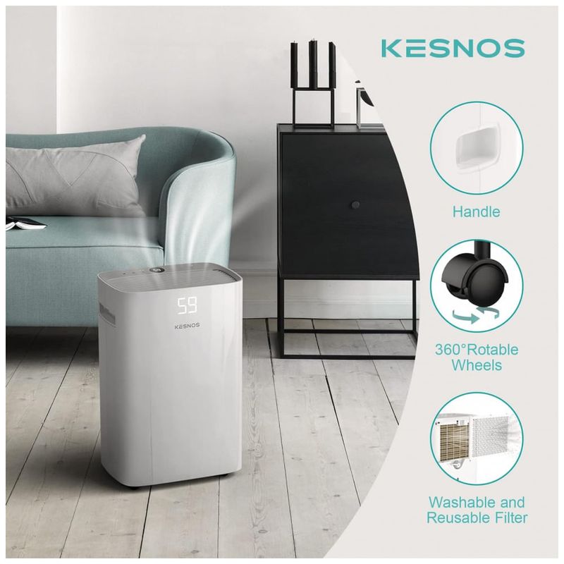DESIGN ÚNICO PARA A CASA MODERNA Este desumidificador portátil da Kesnos é projetado com aparência elegante e moderna, com rodas ocultas 360 fáceis de rodar e alças ergonomicamente embutidas, você pode mover este desumidificador facilmente. É uma operação silenciosa que não o perturbará quando você dorme ou no trabalho e as velocidades do ventilador ajustáveis para várias opções. Com a função de roupas secas, você simplesmente coloca o desumidificador em uma sala onde pode pendurar as roupas molhadas e deixá lo secar naturalmente