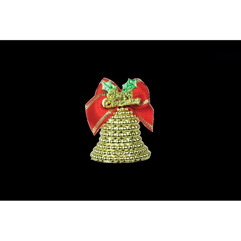Enfeite Em Formato De Sino Com Laço E Detalhe Escrito "Merry Christmas". -