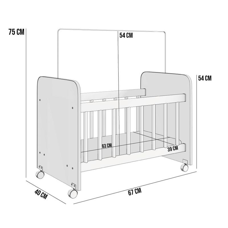 Acompanha colchãozinho, véu e mosquiteiro, para o máximo aconchego da boneca. É produzido com materiais de excelente qualidade, conta com pintura atóxica, bordas arredondadas para maior proteção e possui certificação de segurança emitido pelo INMETRO (Instituto Nacional de Metrologia, Qualidade e Tecnologia). Estimular a imaginação das crianças proporciona uma infância feliz e prazerosa, aproveite e adquira já o seu! Dimensões do produto (L x A x P)