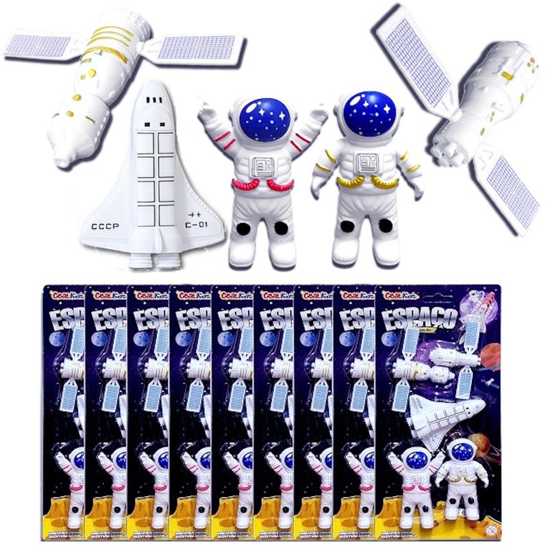 Conjunto de Brinquedos Espaciais Astronauta com Satélites e Nave a Fricção Infantil Para Lembrancinhas de Festas Infantis - 10 Cartelas