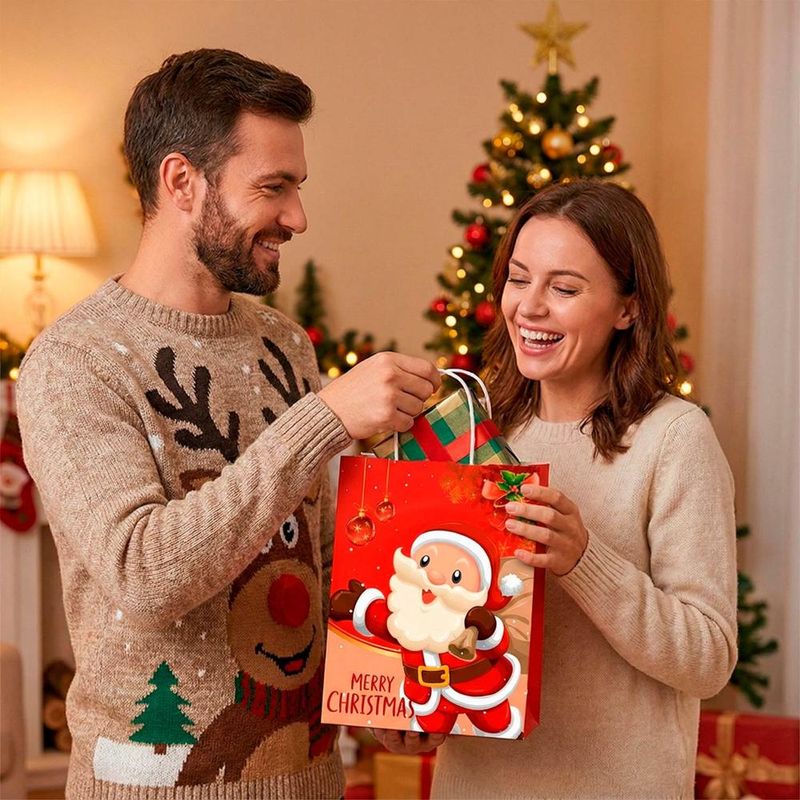 Dê um toque final de carinho e sofisticação aos seus presentes com este Kit de 10 Sacolas de Papel Natalinas! Práticas e encantadoras, elas são a embalagem perfeita para valorizar suas lembranças, evitando o trabalho de embrulhar caixas e garantindo uma apresentação impecável. Com estampas sortidas vibrantes que trazem ícones clássicos como Papai Noel, Renas e Bonecos de Neve, estas sacolas são ideais para presentear amigos, familiares ou colaboradores. Fabricadas em papel resistente com alça torcida, possuem o tamanho ideal (26x22cm) para acomodar panetones de tamanho médio, brinquedos, roupas e kits de cosméticos com segurança e estilo.Kit Econômico Contém 10 unidades com estampas natalinas sortidas Tamanho Versátil Ideal para Panetones e presentes médios Possui alça torcida de papel resistente Estampas com cores vivas e temas clássicos de Natal ATENÇÃO: O modelo é enviado conforme disponibilidade do estoque, não sendo possível escolher a estampa.