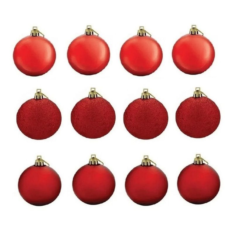 Kit com 12 Bolas para Árvore de Natal Vermelha N° 5 de Alta Qualidade