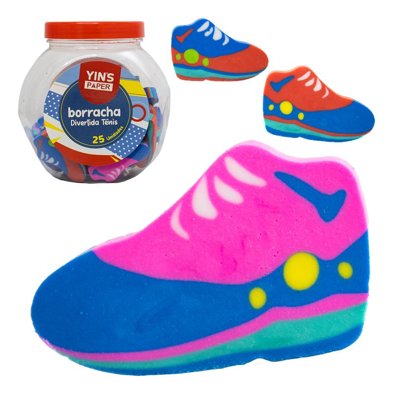BORRACHA ESCOLAR DIVERTIDA TENIS YINS PAPER COM 25 PECAS NO POTE BALEIRO DE PLASTICO COM TAMPAtamanho aproximado dA BORRACHA: 3,5X2cmTamanho aproximado DO POTE: a:8,5xl:8,5XP:6cmPeso aproximado: 160gTipo de produto: BORRACHA ESCOLAR DIVERTIDA TENIS YINS PAPER COM 25 PECAS NO POTE BALEIRO COM TAMPACor: sortidasComposição: BORRACHA
