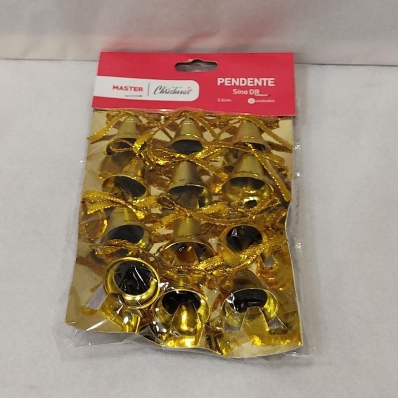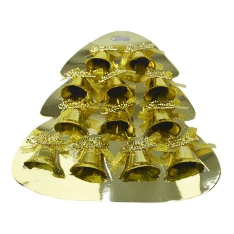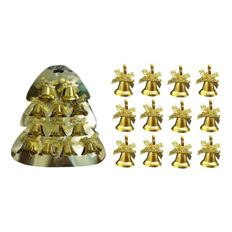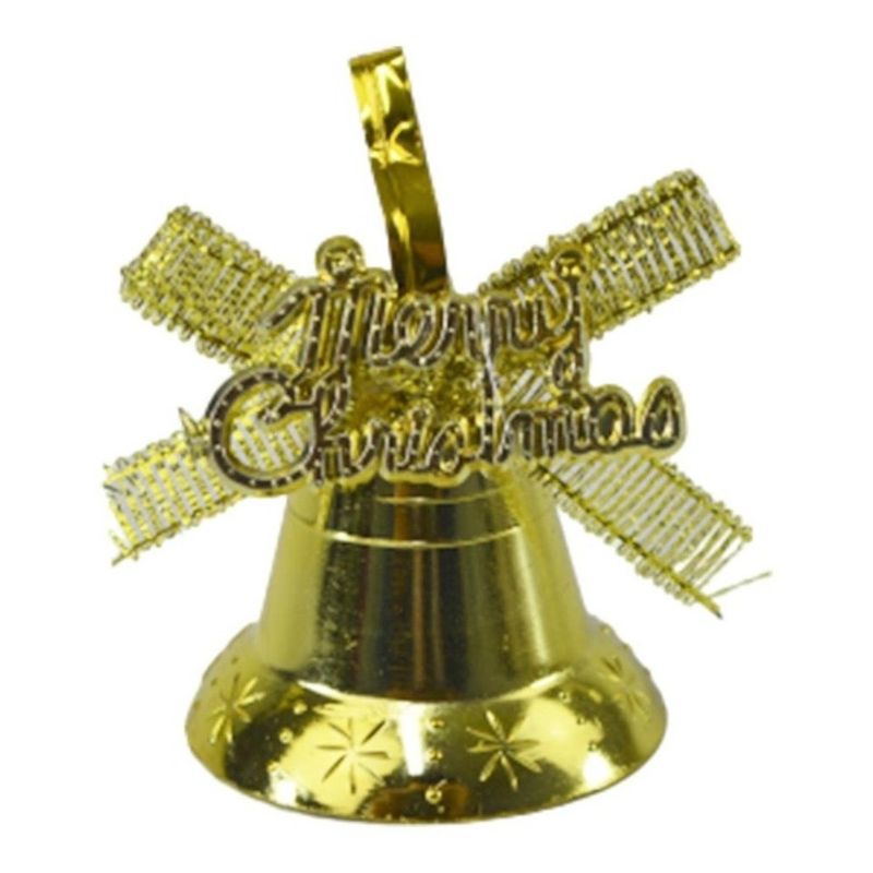Kit 12 Pendente De Natal No Formato De Sino Com 5 CM Dourado com Escrito Merry Christmas