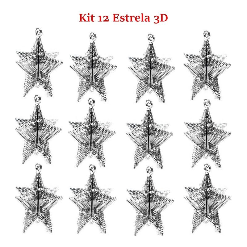 Kit 12 Pendente De Natal Estrela 3d Brilhosa De 5cm