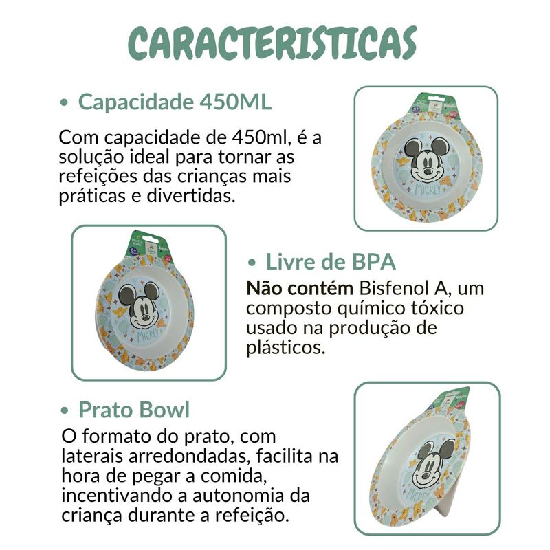 12 x Prato Bowl Infantil 450ml Mickey Disney BabyGo