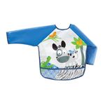 O Avental/Babador com Mangas da Buba possui tecido impermeavel e bolso pega migalhas,