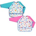 BABYUTENSILIOS PARA ALIMENTAÇÃO DO BEBEBABADORKIT 2 AVENTAL BABADOR COM MANGA LONGA ALIMENTAÇÃO BEBES IMPERMEAVEL PEGA MIGALHAS Cor:Pincelada Azul/Pincelada Rosa