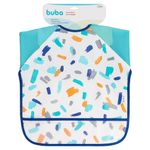 O Avental/Babador com Mangas da Buba possui tecido impermeavel e bolso pega migalhas,
