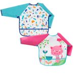 BABYUTENSILIOS PARA ALIMENTAÇÃO DO BEBEBABADORKIT 2 AVENTAL BABADOR COM MANGA LONGA ALIMENTAÇÃO BEBES IMPERMEAVEL PEGA MIGALHAS Cor:Pincelada Azul/Rosa