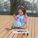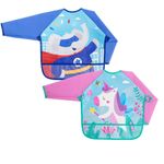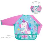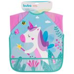 O Avental/Babador com Mangas da Buba possui tecido impermeavel e bolso pega migalhas,