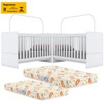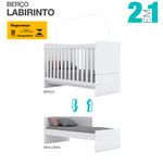 Kit 2 Berço Mini Cama Labirinto Com Colchões, Certificado pelo INMETRO Nº 001 087/2020, possibilita 02 formas de uso para acompanhar o crescimento da criança, estrutura resistente em MDF de 25, 15 e 12 mm e MDP de 15 mm, acabamento em pintura UV/PU (Brilho e Fosco). Acompanha colchão medindo 130 X 60 cm, espuma 100% poliuretano flexível, densidade D18. Estrado resistente com regulagem de altura sendo a Regulagem Alta 51 cm do chão e a Regulagem Baixa 21,6 cm do chão, grades fixas, contém suporte para mosquiteiro, suporta até 25 Kg, este berço irá oferecer charme e estilo. Estes móveis chegaram a sua casa separados em 04 volumes.