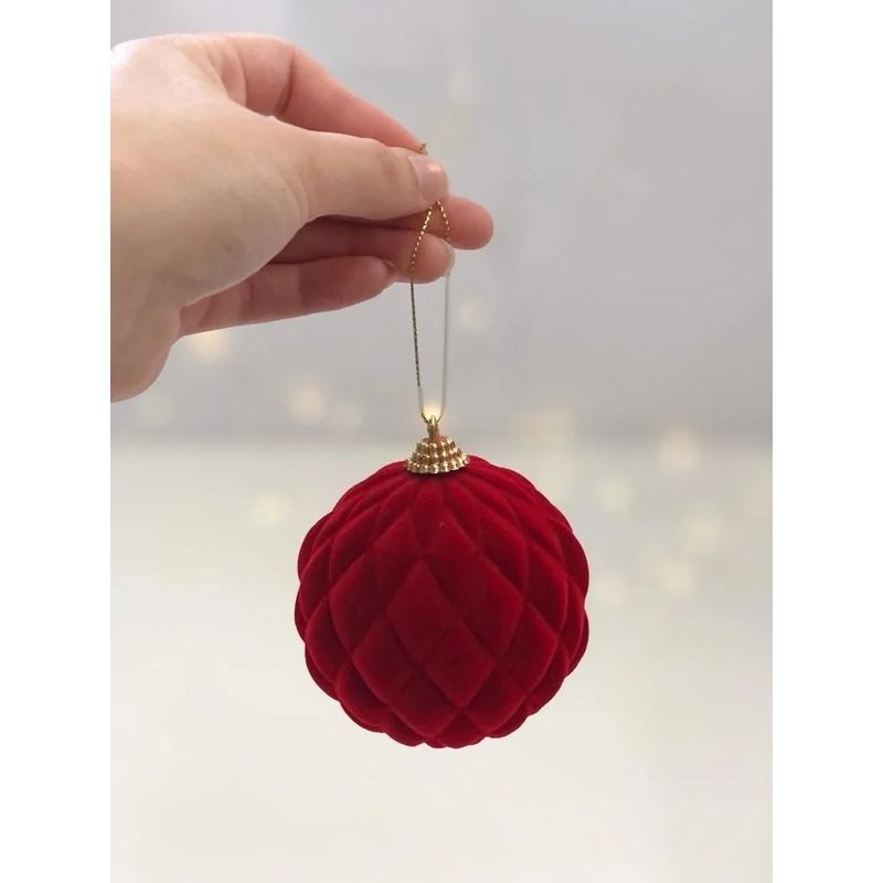 Kit 2 Bola De Natal De Veludo Camuça Desenhada De Luxo 10 Cm